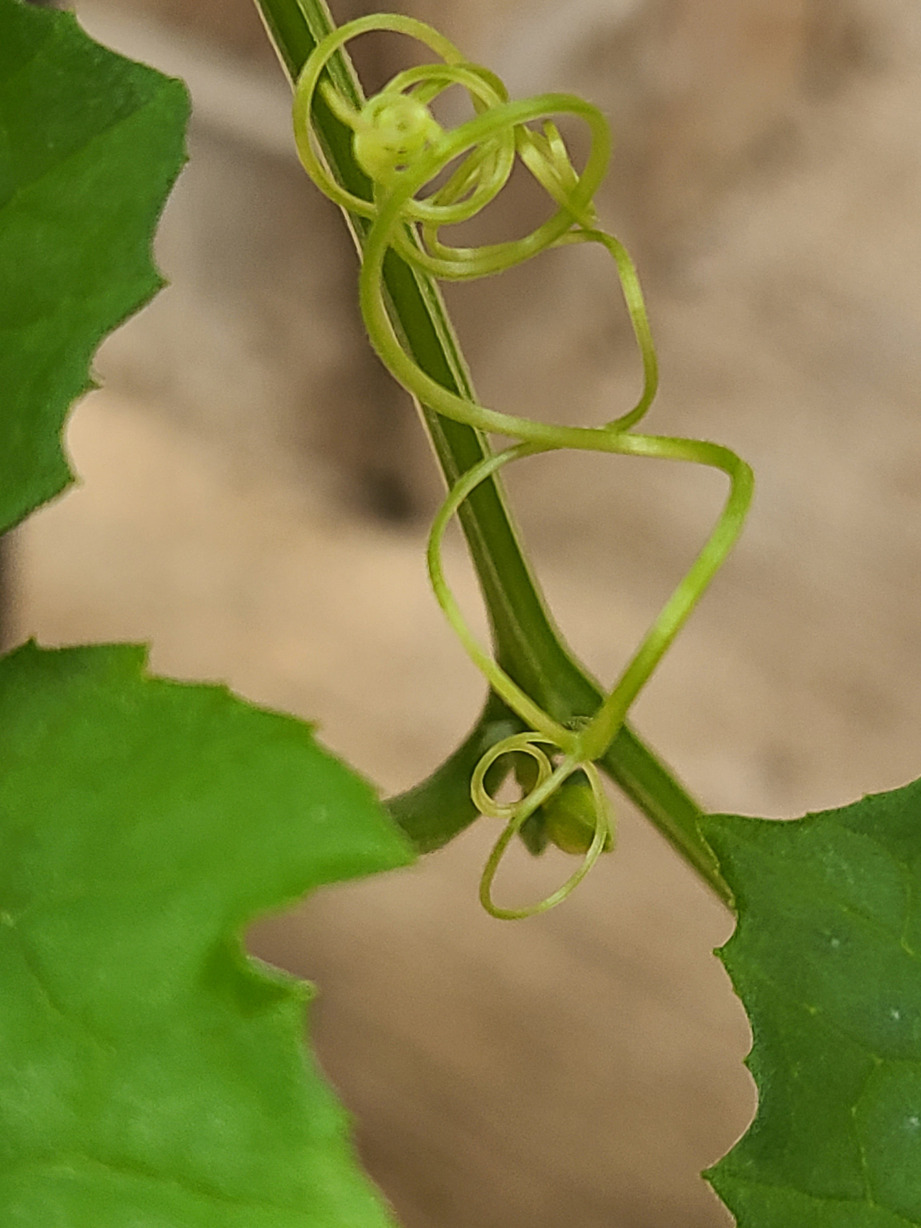 This is Luffa. A summer plant, by all definitions, bound and determined to be the first fiber plant even if it means blooming in winter.
